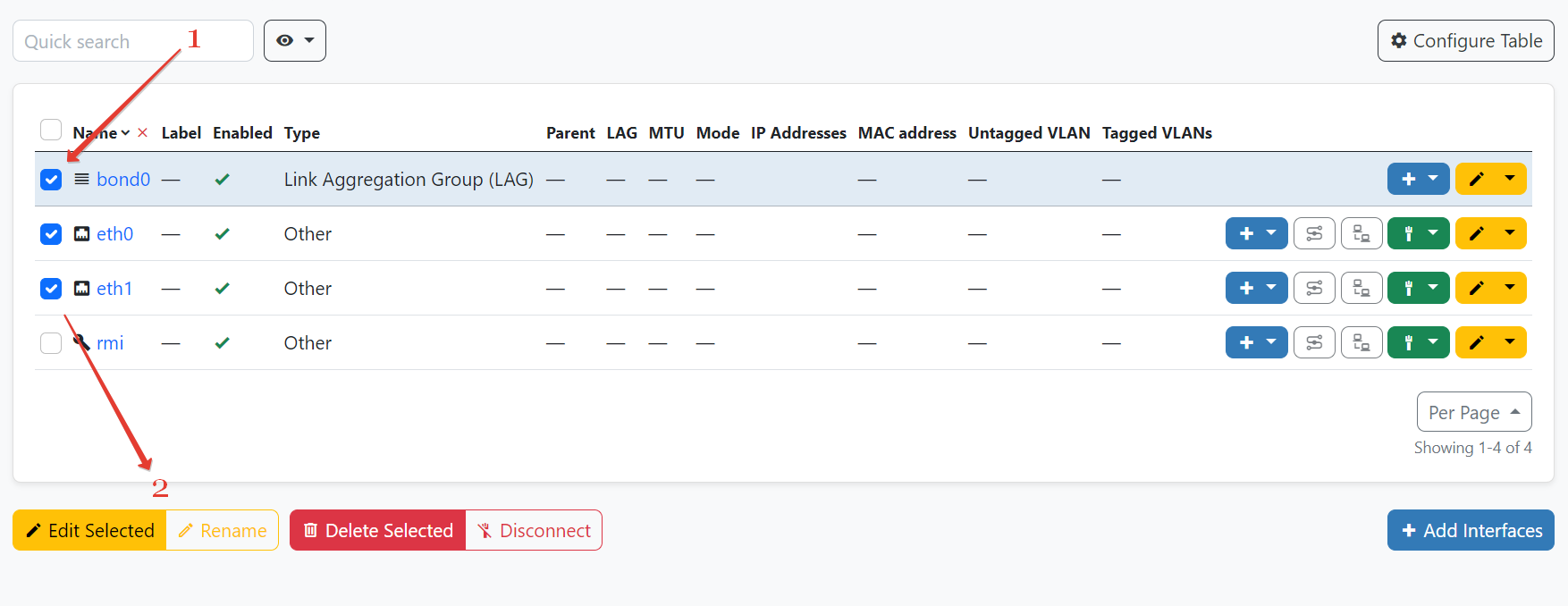 Devices → Devices → Add Components → Interfaces.