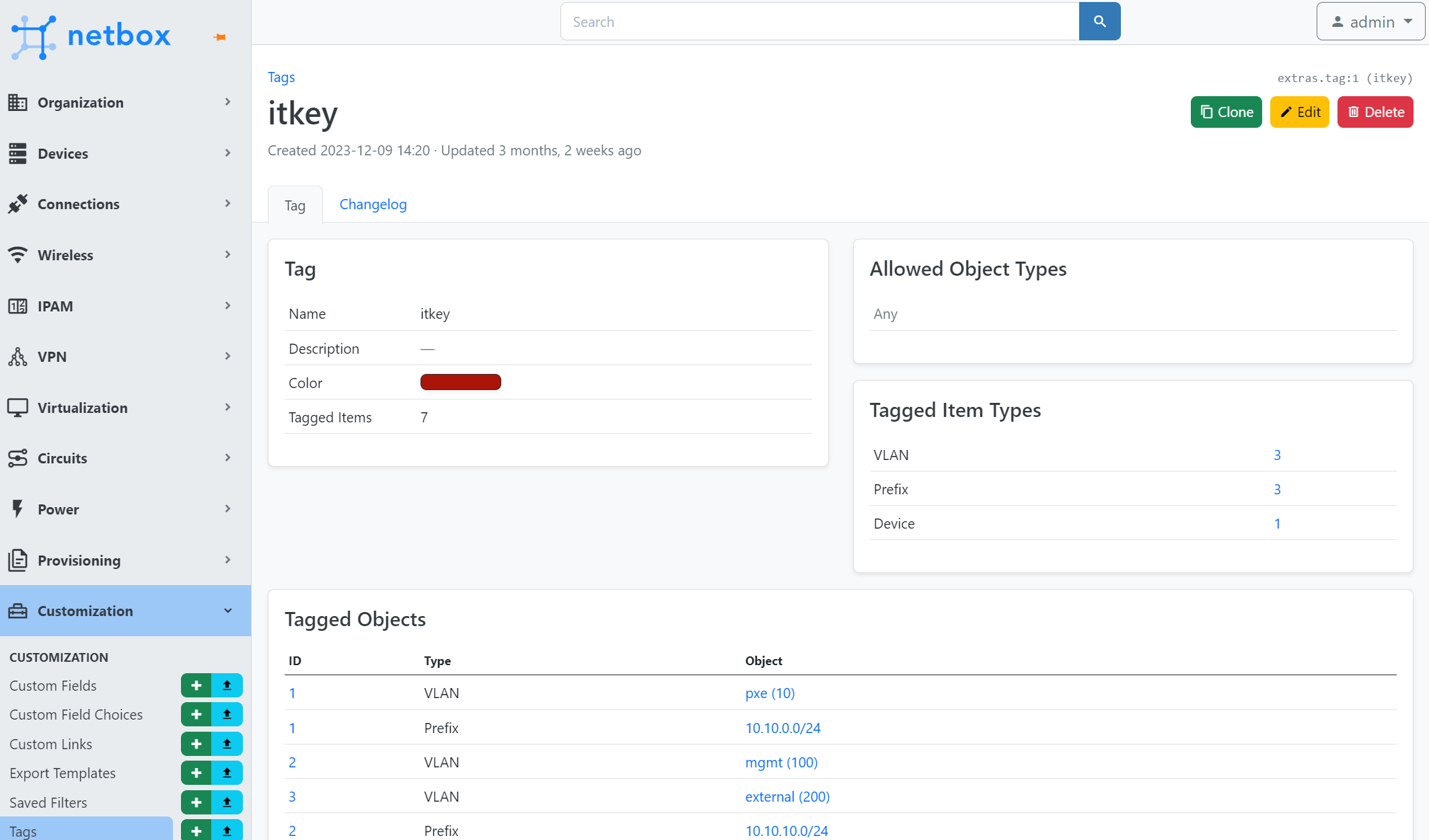 В работе с Netbox желательно наличие как минимум трех VLANs (для сайта и тенанта). В нашем случае это pxe, mgmt и external.