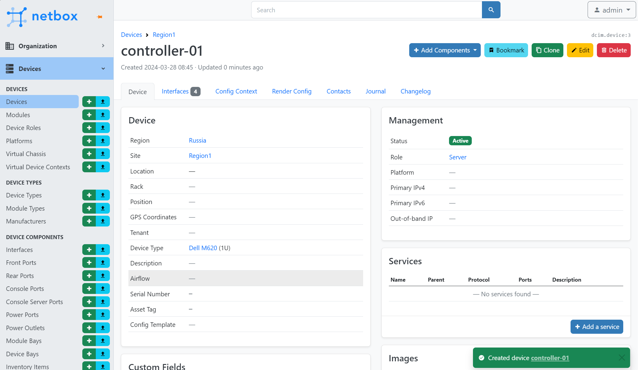 Если в Netbox еще не заполнены данные по серверу, нужно выполнить следующие действия: