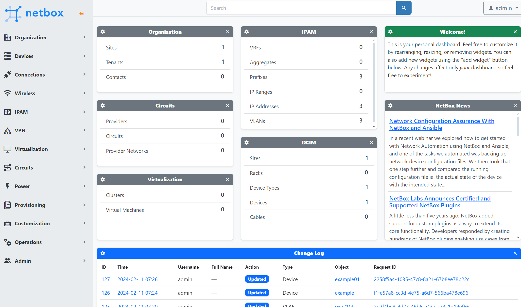 Пользовательский веб-интерфейс доступен по адресу https://netbox.<domain_name>.