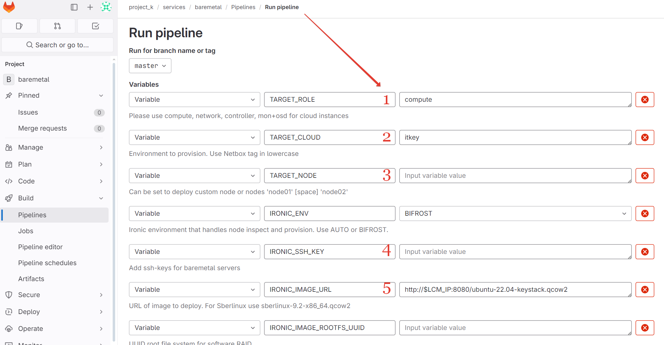 Когда в GitLab настраивается пайплайн, эти параметры соответствуют следующим данным из NetBox: