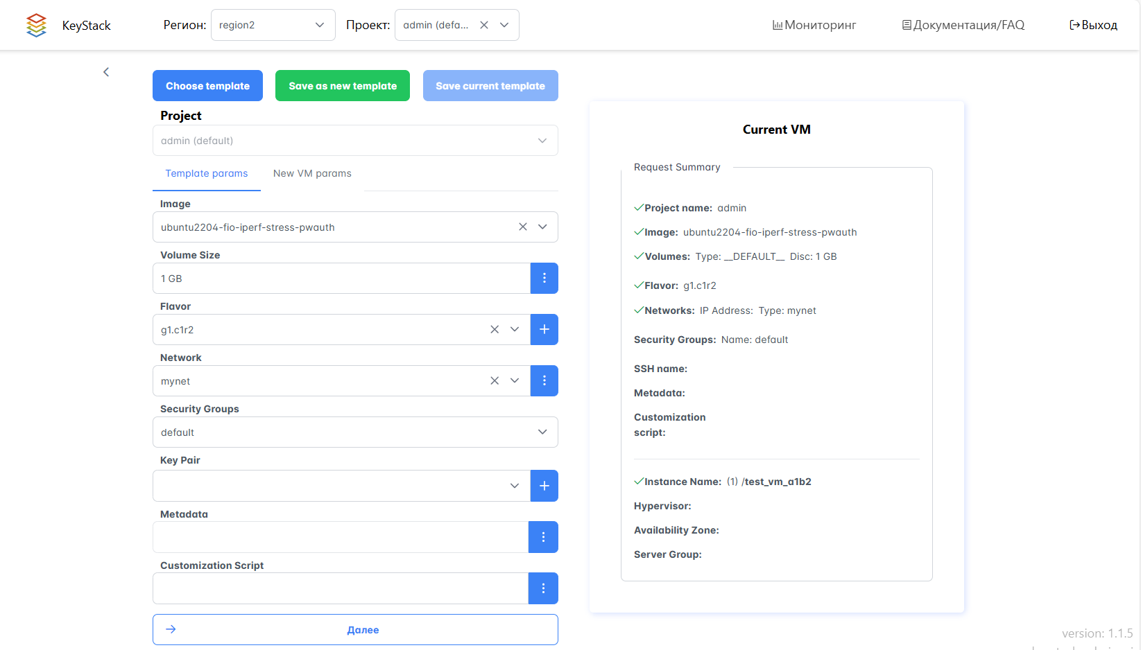 Укажите параметры на вкладке New VM params и нажмите Создать.