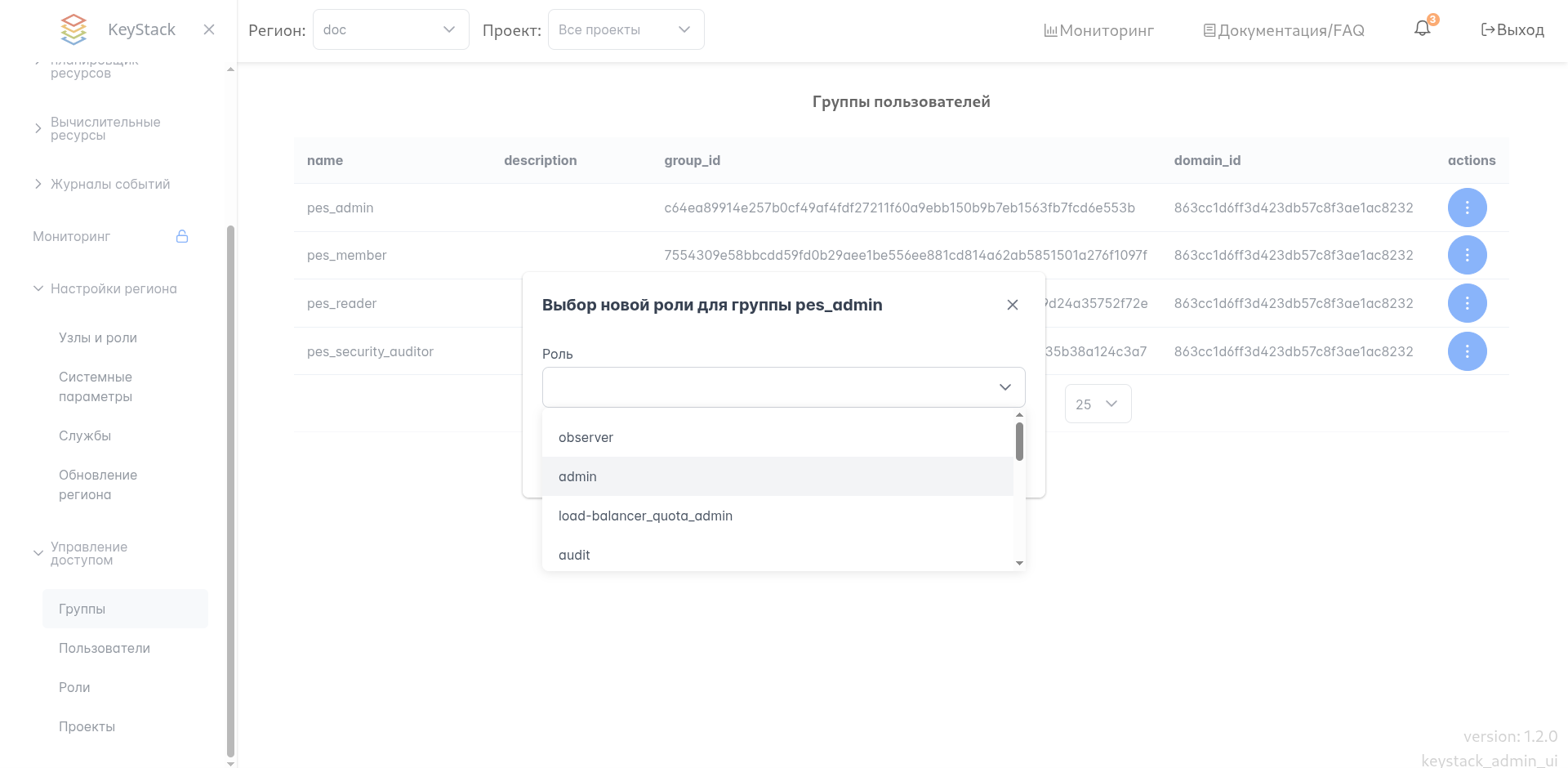 При планировании структуры доступа учитывайте иерархию ролей OpenStack. Роль admin предоставляет полный контроль над ресурсами проекта, включая управление квотами и сетевыми настройками. Роль member позволяет создавать и управлять виртуальными машинами, томами и другими ресурсами. Роли reader и security_auditor ограничены просмотром без возможности изменений.