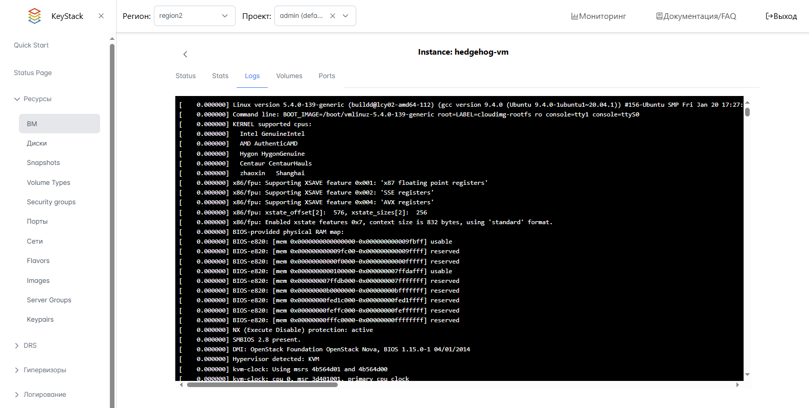 Запуск, перезапуск и остановка ВМ осуществляется на Портале администратора, на портале самообслуживания или в OpenStack CLI.