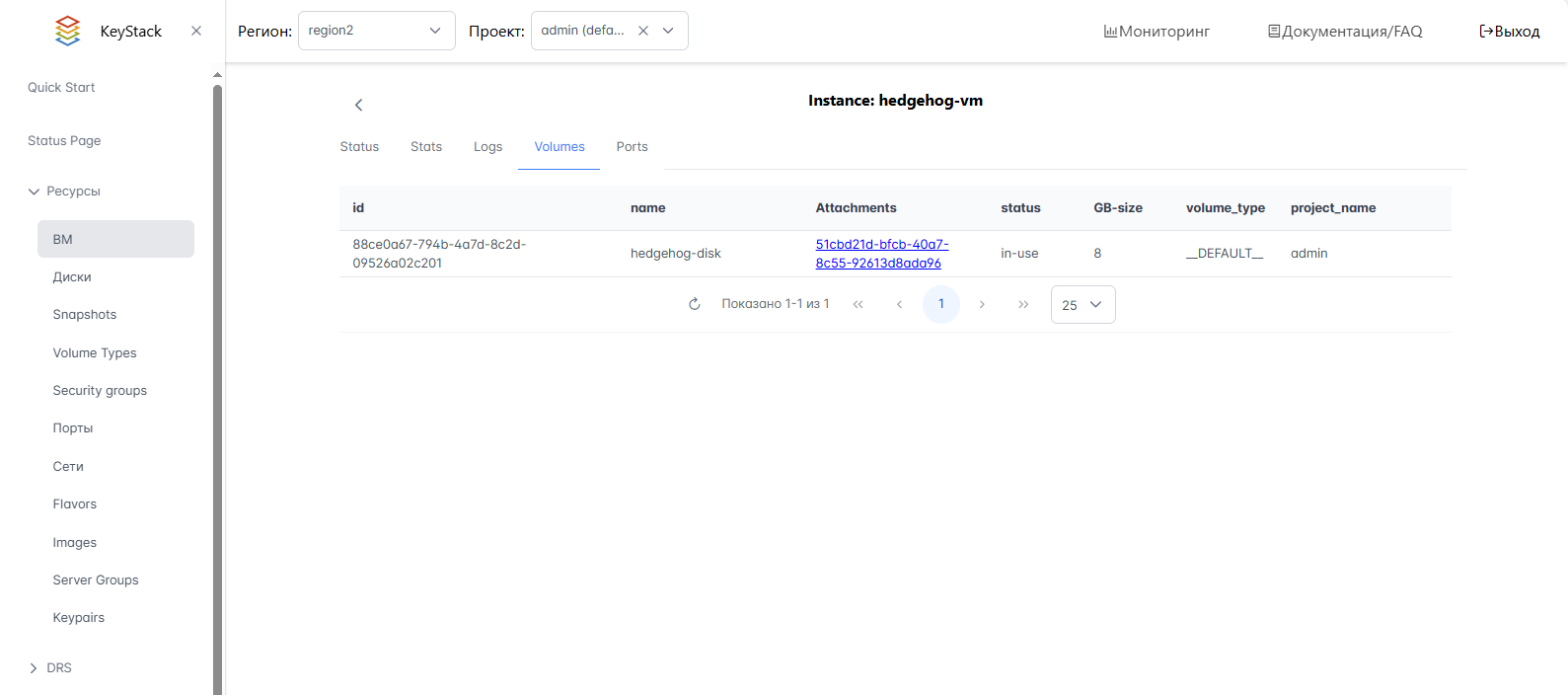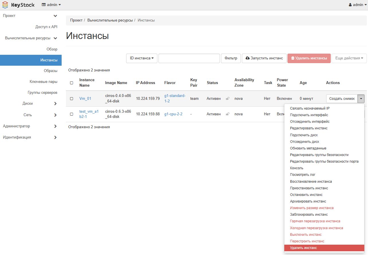 Выберите Вычислительные ресурсы > Инстансы в левом меню интерфейса,