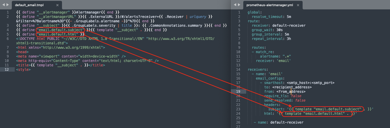 С продуктом поставляется шаблон почтового уведомления в файле default_email.tmpl. В данном шаблоне определяется формирование темы (subject) и самого тела письма с уведомлением.