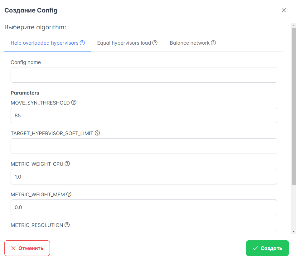 METRIC_WEIGHT_CPU = 1— коэффициент, определяющий вес получаемых данных о нагрузке на CPU гипервизора;