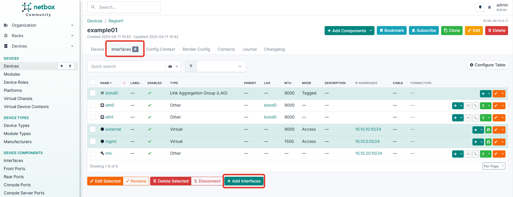2. После того как устройство будет добавлено, зайдите в него и добавьте сетевые интерфейсы.