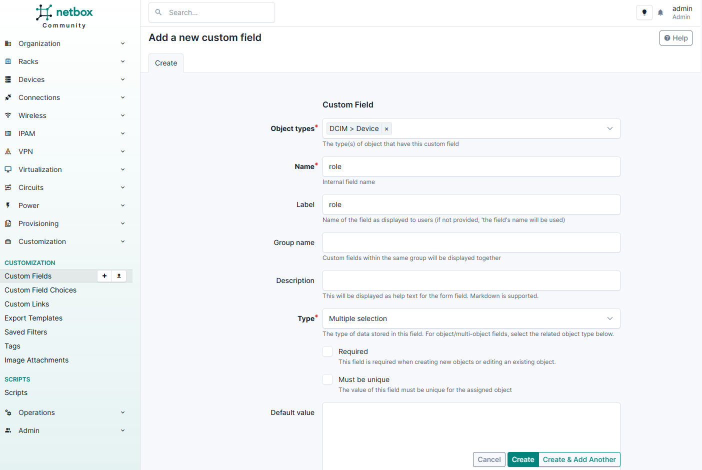 Добавление нового специального контекста в NetBox