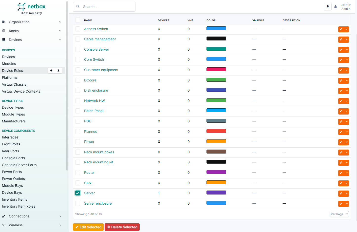 Для того чтобы определить роли устройств, откройте раздел Device Types > Device Roles и выберите, что нужно установить. Обычно это Server.