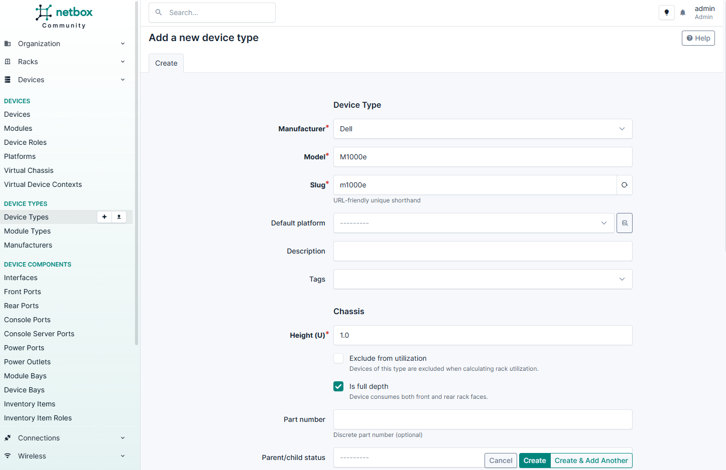 Добавление нового устройства в NetBox