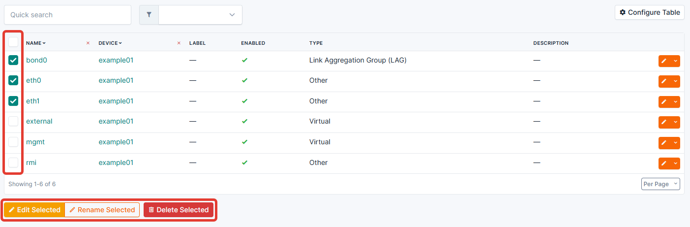 • Devices > Devices Components > Interfaces.