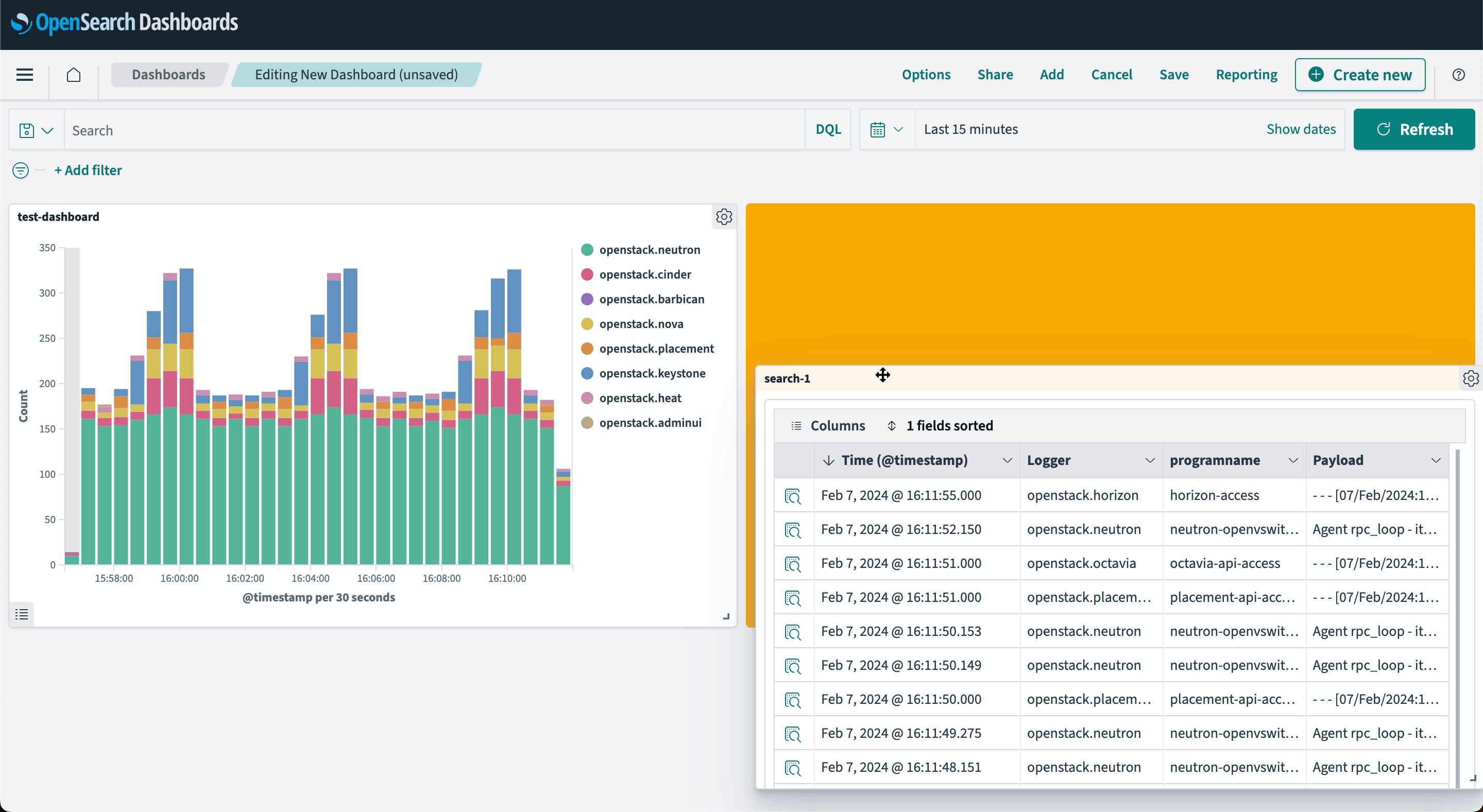 В составе настоящего релиза OpenSearch поставляется без преднастроенных панелей. Предполагается, что администраторы кастомизируют панели под бизнес-задачи.